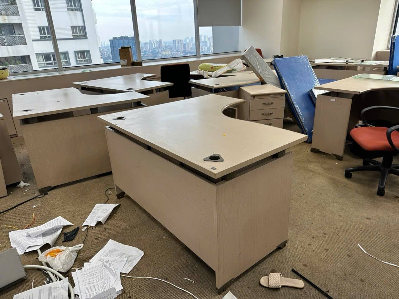 | 5 | Bàn ghế văn phòng, bàn giám đốc | Cũ, trầy xước nhẹ, hư một phần | 100.000 – 800.000 / bộ | Tùy loại gỗ, chân sắt hay MDF |